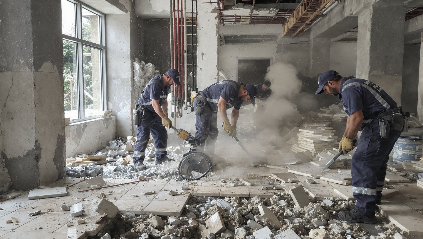 🔨 جميع أنواع التشطيبات والتكسير (حمامات – مطابخ – محارة – مباني – خرسانات)